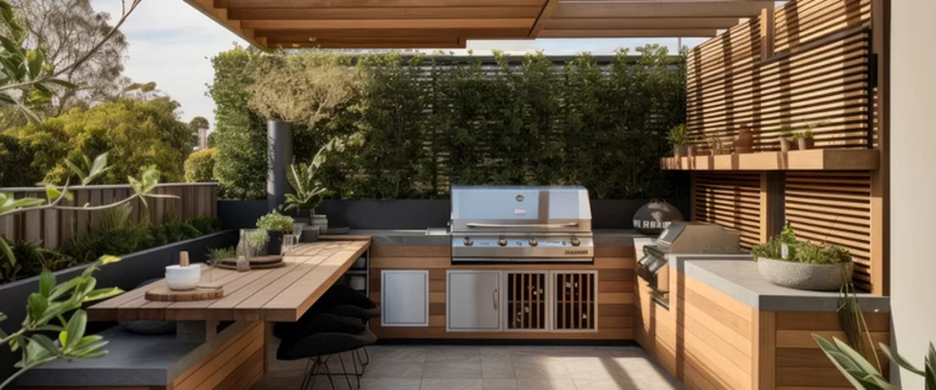 Patterned tiles or pavers can add visual interest without overwhelming the space. Soft lighting, well-placed furniture, and plants can complement your flooring choice, turning your backyard into a true culinary paradise.